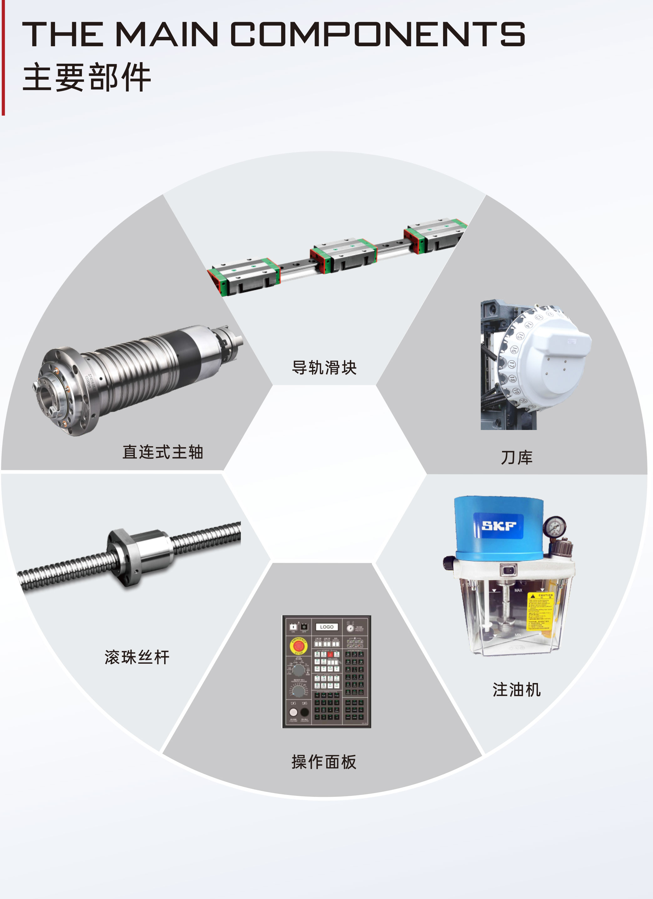 標準20000轉(zhuǎn)直接式主軸,效率高,無皮帶傳動誤差。